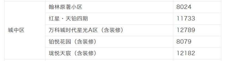 城中区交易量居首的是中海翰林原著项目,其网签均价为8024元/㎡,其次为红星·天铂四期、万科城时代星光A区、铂悦花园和珑悦天宸项目,网签均价分别为11733元/㎡、12789元/㎡、8079元/㎡和12182元/㎡。