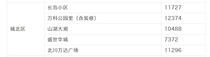 城西区成交量top5楼盘分别是长岛小区、万科公园里、中海山湖大观、盛世华城和北川万达广场项目,网签均价分别是11727元/㎡、12374元/㎡、10488元/㎡、7372元/㎡和11296元/㎡。