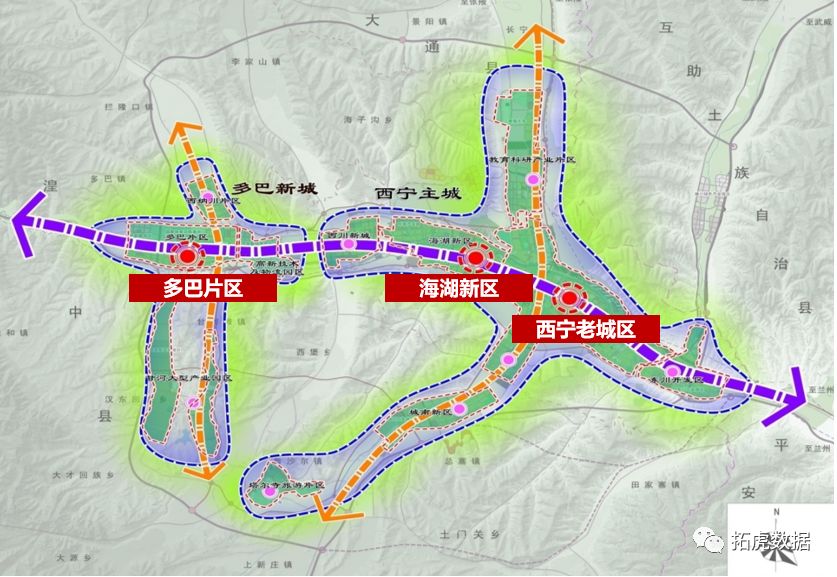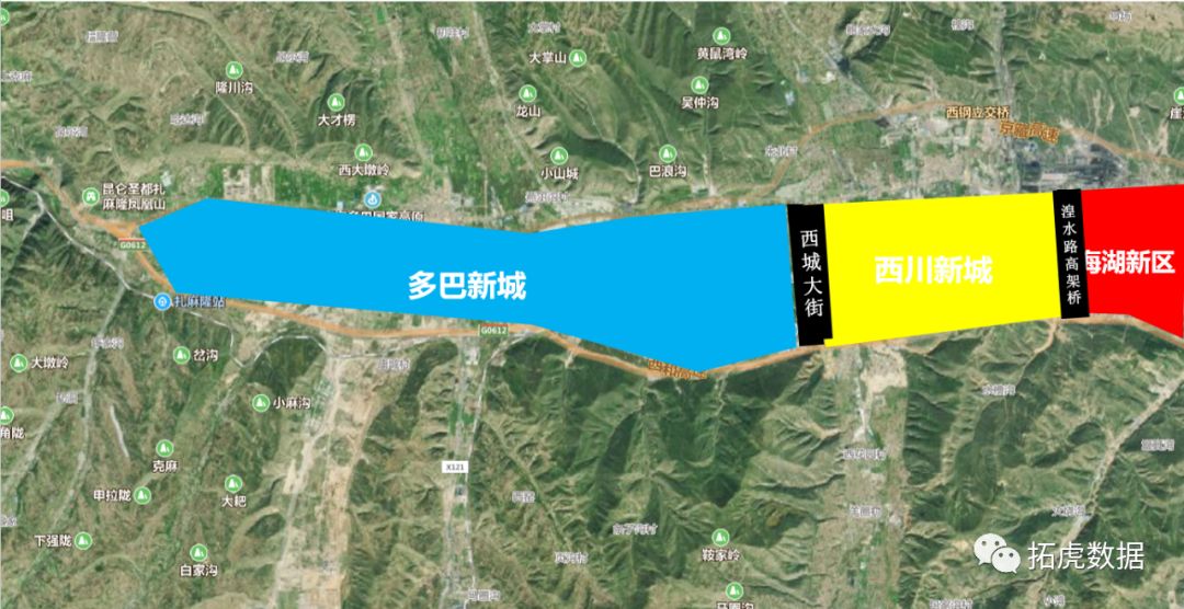 那么问题来了,一个距离西宁主城区约25公里的多巴新区,如何与西宁连为一体,总不能隔空传物吧?这里又出现了一个重要媒介,即西川新城。