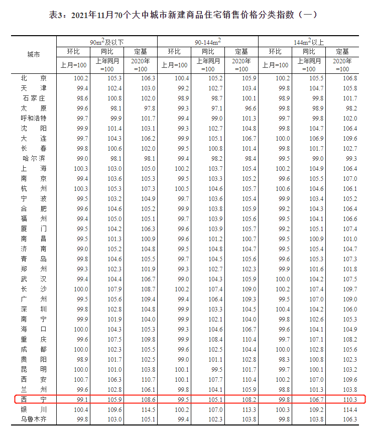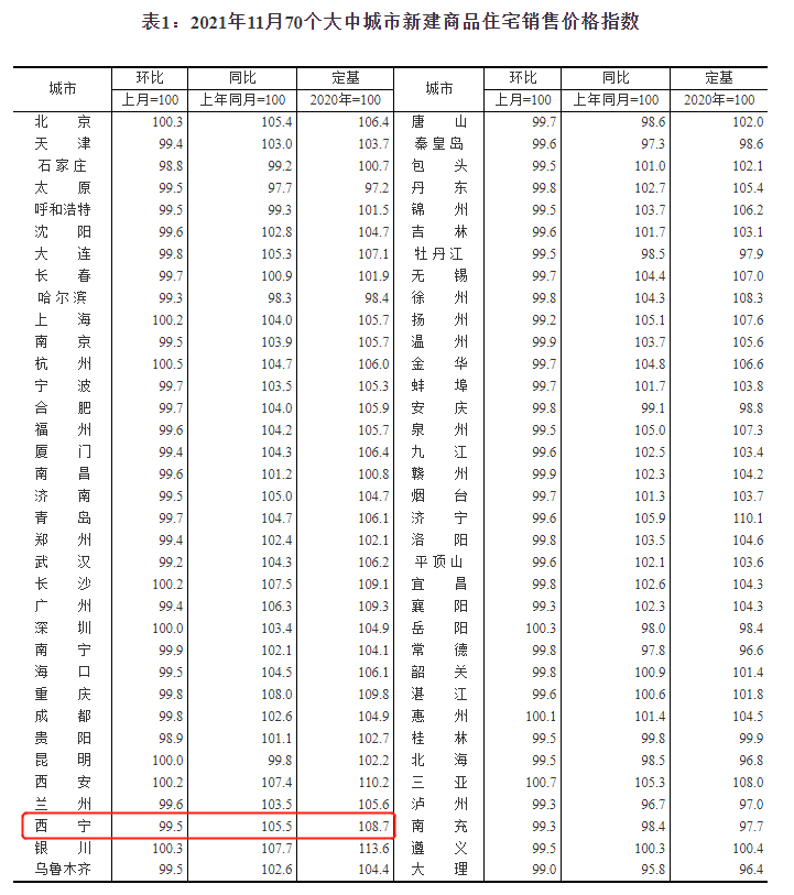 真降了?11月70城房价出炉!西宁新房价格环同比涨幅持续回落