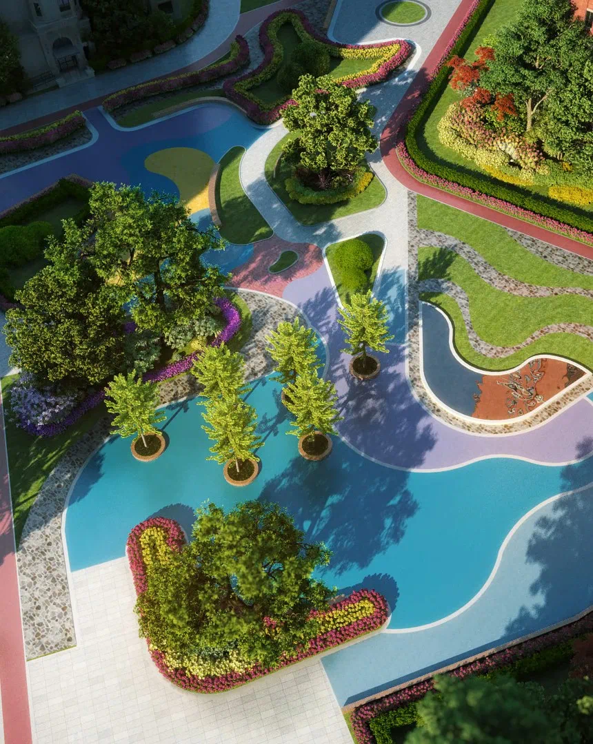 新华联·梦想城在项目社区园林规划打造上,以伦敦海德公园为蓝本,整个园林设计灵感来源于海德公园,重锦英式园囿,雕琢自然博物大境。以纯粹英式园林为蓝本,依临城市水系景观,施法自然台地,布局多重中心景观,连缀多主题人文小品组团,通过林荫、树阵、花簇、草坪及路道等元素的运用,方寸间演绎英伦浪漫格调。